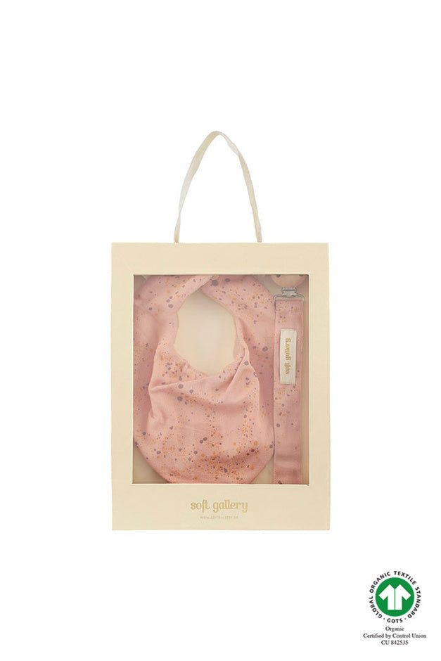 Denne praktiske babypakke fra Soft Gallery er den perfekte gave til de nye forældre eller til dig selv for at få den bedste start på shopping baby. Pakken indeholder en smæk- og nappekæde i det smukkeste design. Produkterne er selvfølgelig lavet af 100% GOTS -certificeret bomuld.