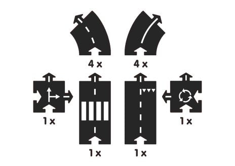 Byg din egen ringvej med denne 12-delede bilspor. Bilbanen er lavet af holdbar og fleksibel gummi, så den kan bruges både indendørs og udendørs. Den lille kan samle kurset, ligesom han vil. Kurset kan være 170 cm lang.