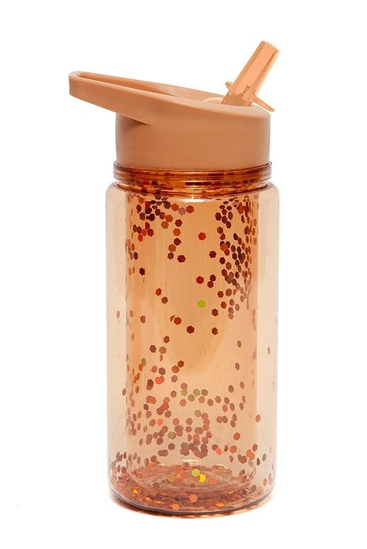 Denne drikkeflaske er i en dejlig bronzefarve med glitter på den Udenfor. Glitteret bevæger sig, når babyen drikker fra drikkeflasken, og det bliver derfor også sjovt for barnet at drikke vand. Ved at gøre det til en sjov oplevelse vil barnet blive motiveret til at drikke mere vand.