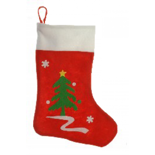 Fin julestrømpe med motiver af et juletræ. Perfekt til at hænge op og skjule små gaver fra plottet i løbet af julen.
