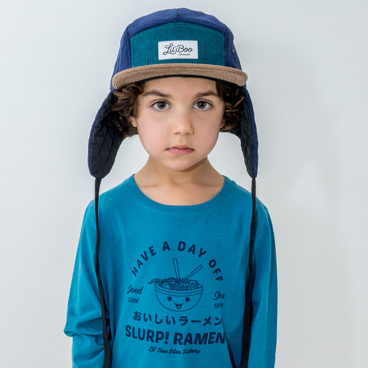 Cap, Manchesterblock 5 panel med øregrøn (størrelse M, 1,5-3 år)
