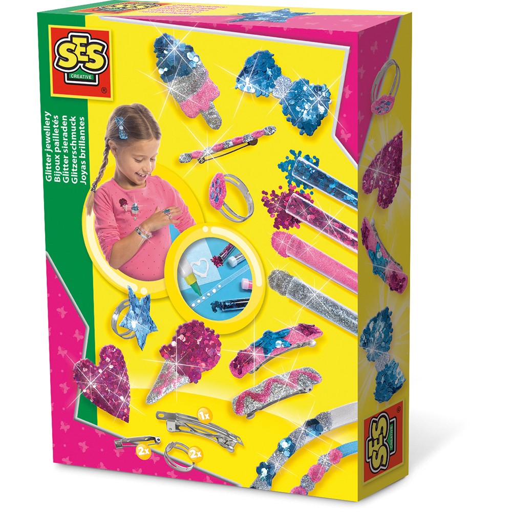 Nu kan den lille gå i krig og design og skabe deres helt eget smykker og tilbehør med dette glitter sæt fra SES Creative.