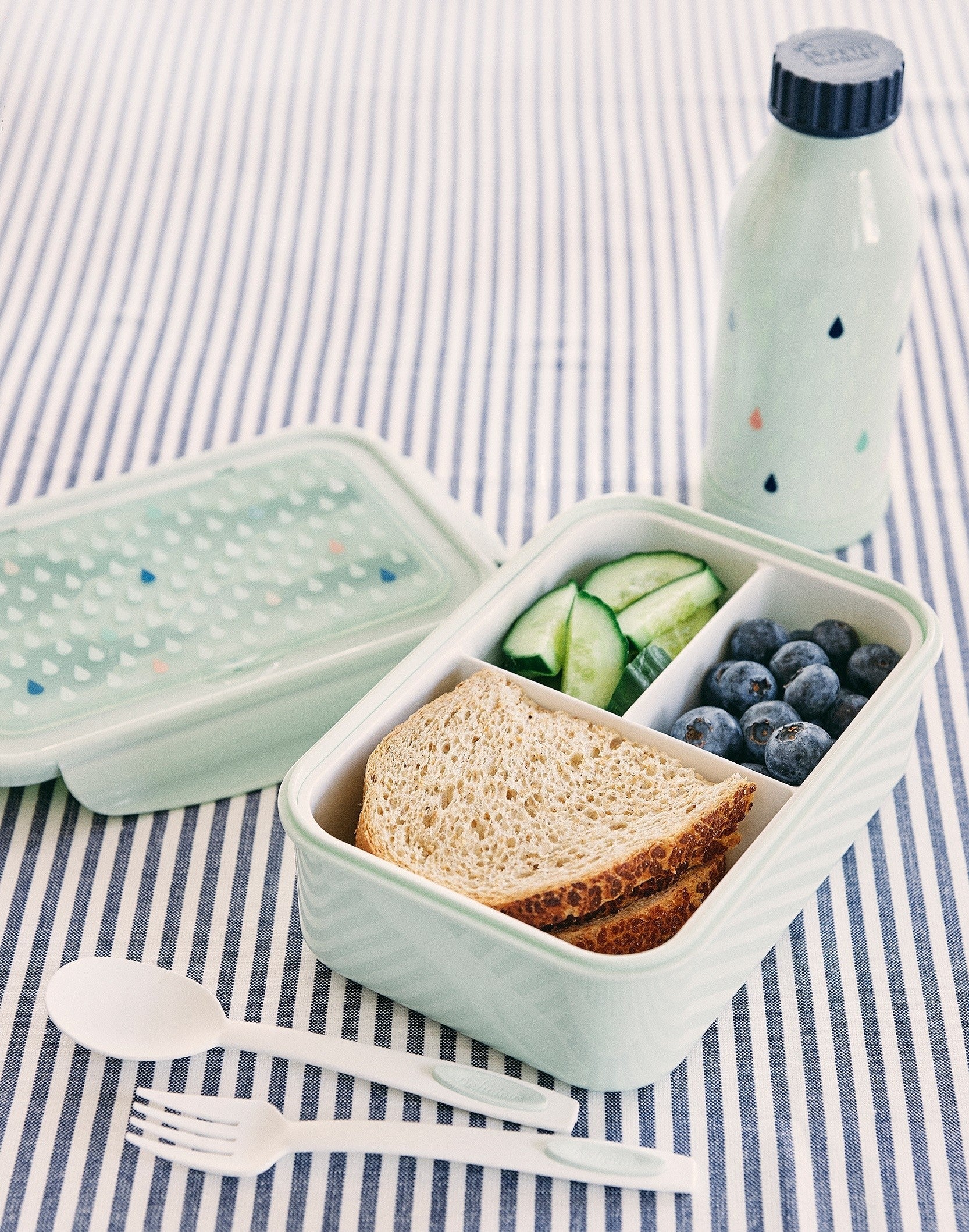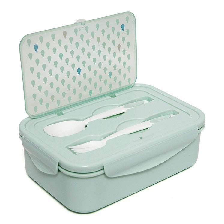 Smuk madkasse med bestik fra Petit Monkey, der er opdelt i rum, såsom Rye -brød snacks og frugt kan opbevares separat. En ske og en gaffel inkluderet.