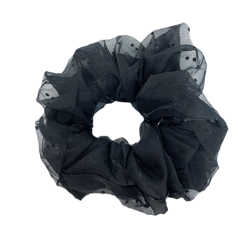 Den dejlige store scrunch i den fineste sorte farve med små fine sorte prikker. Denne scrunchie kan kombineres med alle tøj på grund af den individuelle farve. Det kan bruges i alle aldre og til alle lejligheder, hvad enten det er i skole, job eller fødselsdage. Derfor er det perfekt til hverdagens look, men også det ekstraordinære look.