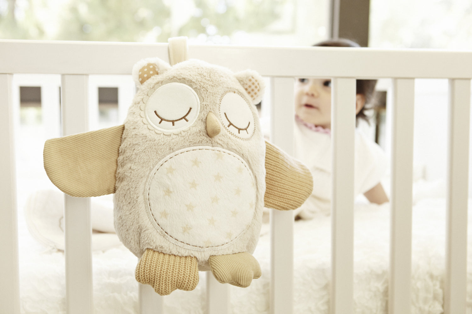 Den søde ugle, der har en spiller inde i bamsen. Det har en smart lydsensor, der automatisk begynder >