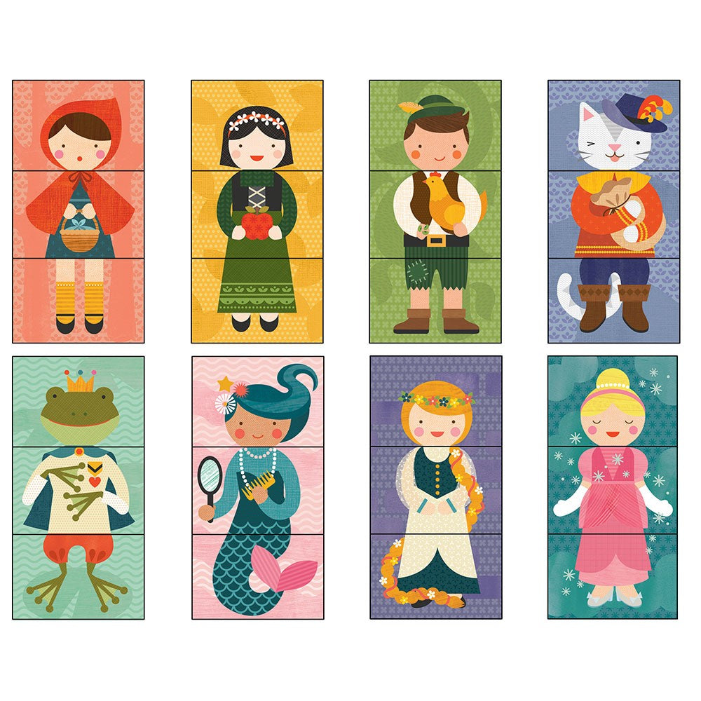 Bland og match de forskellige dele af eventyrfigurerne for at skabe dine egne unikke tegn.