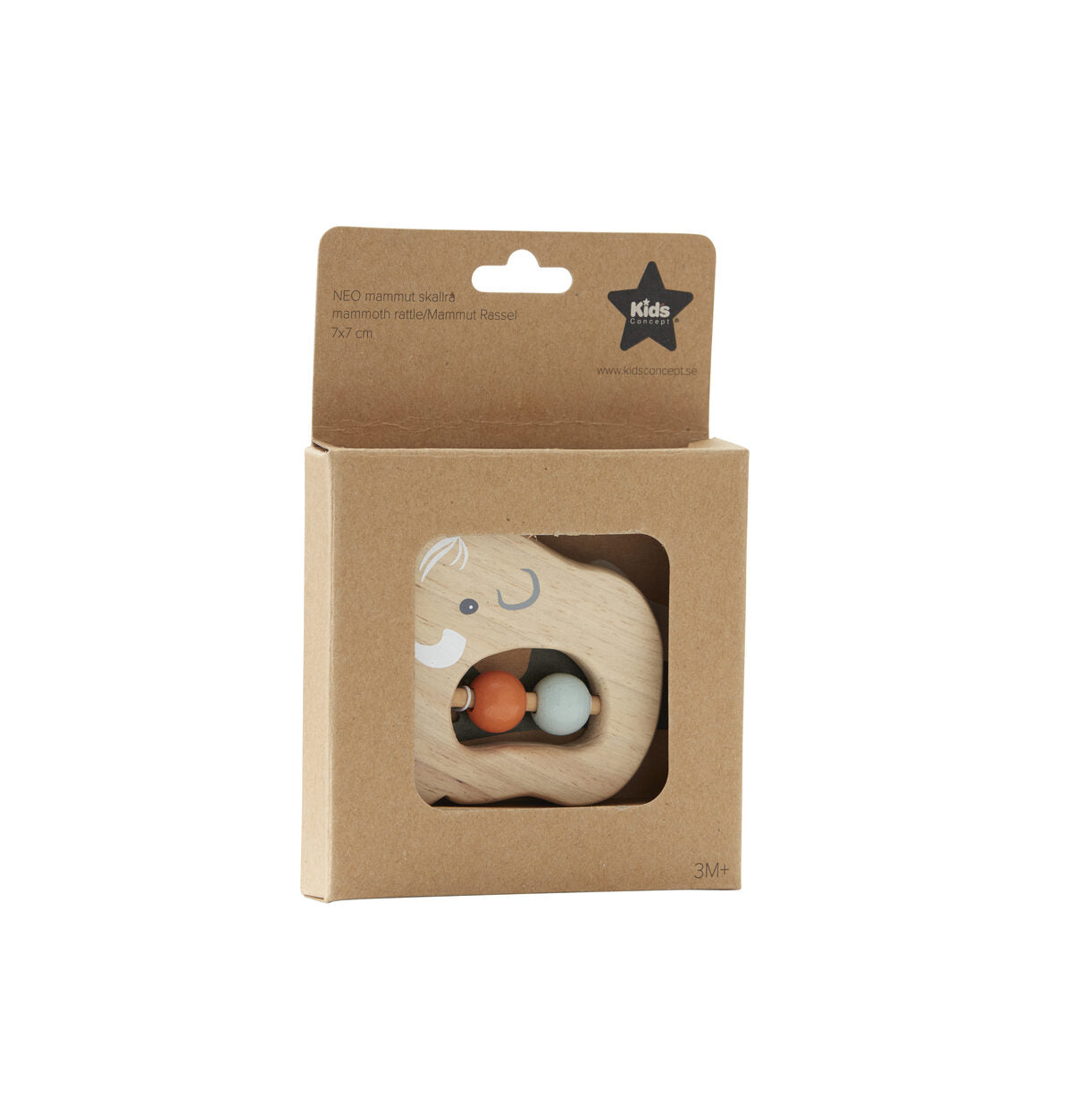 Den fineste lille træskal fra Neo -serien, der repræsenterer en sød lille mammut. Kraniet består af en stor figur med to træperler, som både kan dreje og rasle.