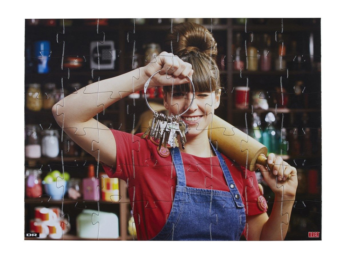 puslespil med 48 stykker, der tilsammen danner et billede af den søde lyserøde fra RouladeGade, som børnene føler fra Ramasjang. Superpopulær puslespil, for børn, der let trænes til at lægge puslespil. 30 x 40 cm foldet