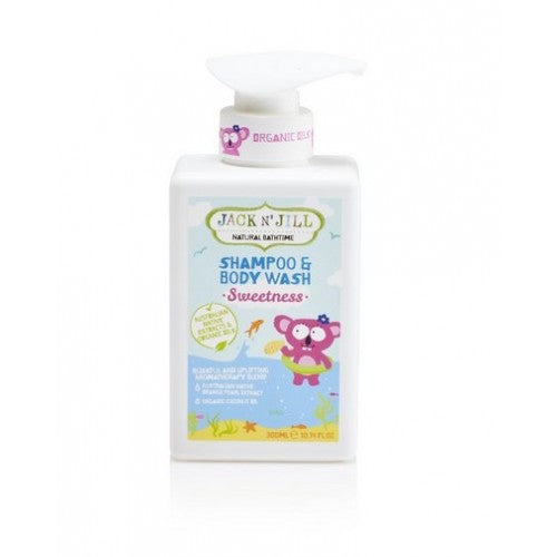 denne shampoo & amp; Kropsvask fra Jack n 'Jill er en lækker kombineret shampoo og kropsvask lavet med naturlige og organiske olier og ekstrakter fra Australien. Den unikke sammensætning af olier og vitaminer renser huden i dybden uden at tørre den ud.