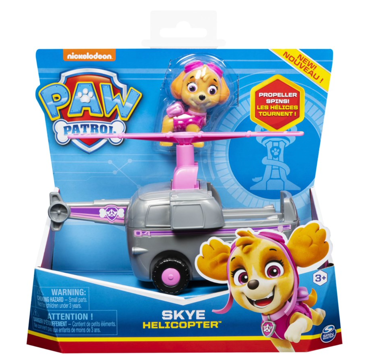 Nu kan du gå på redningsopgaver med hvalpen Skye fra Paw Patrol i hendes nye redningshelikopter. Helikopteren har fungerende hjul og en dejlig lyserød propell, så opgaver kan udføres både på land og i luften.