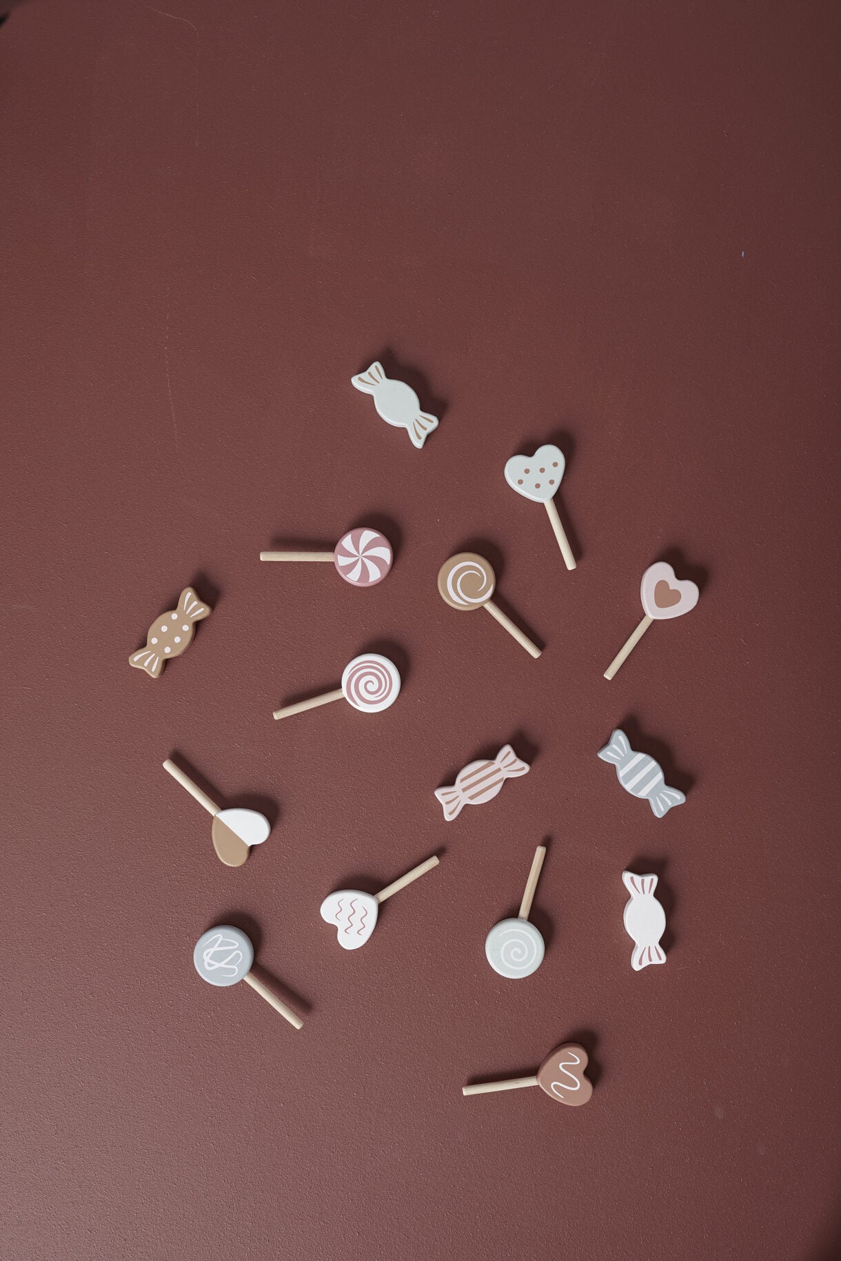 Superfint sæt med alle slags slik fra Kid's Concepts Bistro Collection. Alle lusboller er lavet af træ og en opbevaringspose inkluderet. Set er perfekt til dit barn at starte deres egen lille butik derhjemme eller til legekøkkenet. Derudover er det perfekt sammen med andre legetøj fra Kid's Concepts Bistro Collection.