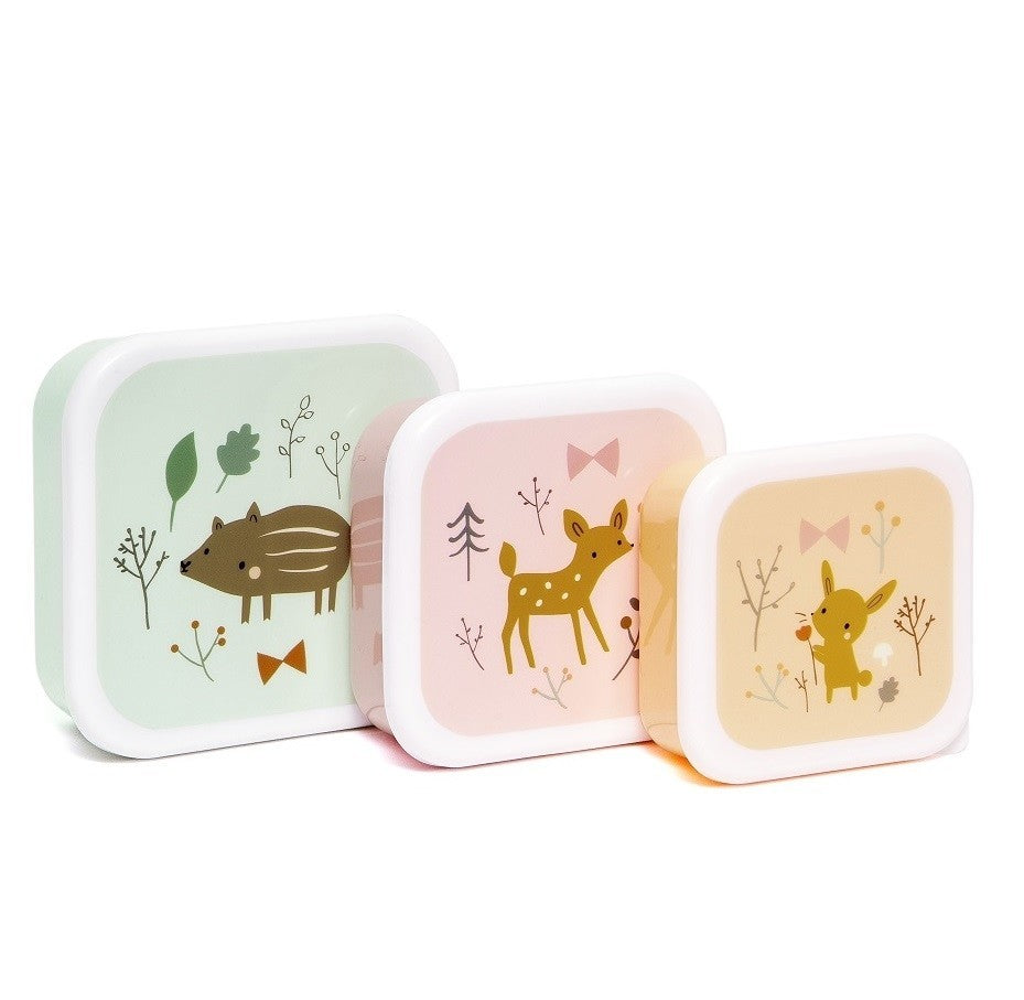 Smarte snackbokse med søde motiver på låget og de fineste pastelfarver! De er perfekte til at fylde med godbidder til dit barn, mens du rejser.