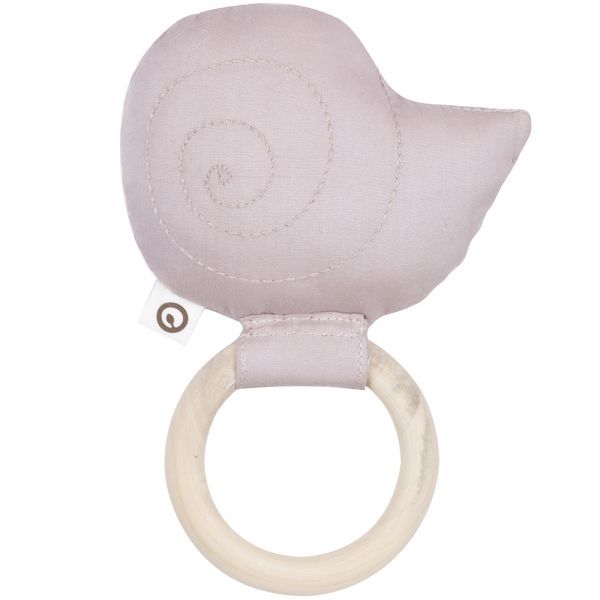 Stilfulde rangler fra MUESLI med en lille snegle på toppen i en dejlig støvrosa farve. God distraktion for baby, når tingene skal slappe af igen.