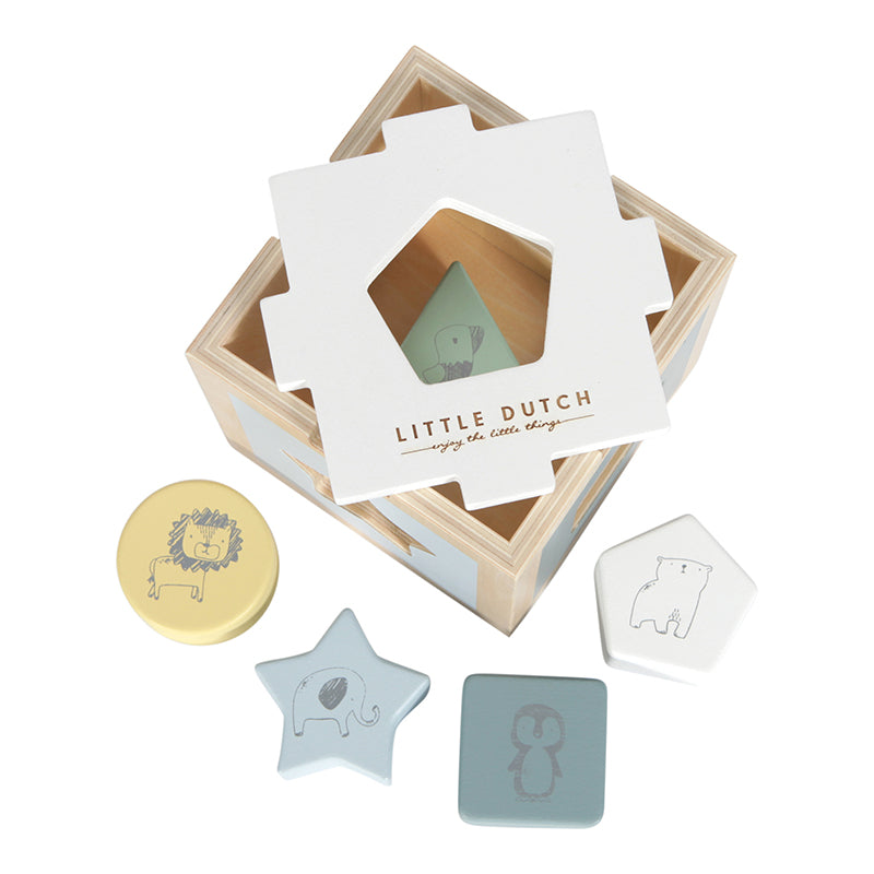 Denne smarte sorteringsboks fra Little Dutch har et lækkert og smukt design, der kendetegner lidt hollandsk. Hvor klodset er et dyremotiv. Inviterer til sjov leg og gode samtaler med barnet om farver, former, dyr osv. Barnet styrker også hans hånd/øjenkoordinering og fine motoriske færdigheder ved at sætte blokke i boksen.