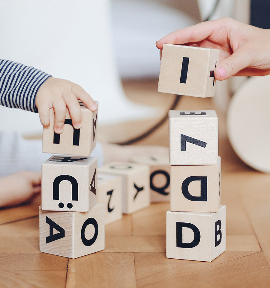 Den specielle ting ved denne træblok fra mærket ooh noo er, at det har 6 specialbrev fra de nordiske alfabeter - Æ Æ ü Ø.