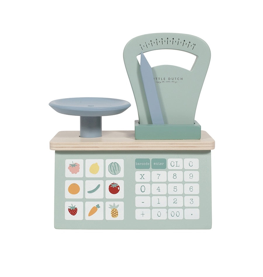 Sød vægt, der er et perfekt tilbehør til legekøkkenet, så den lille kan spille købmand eller grøntsagsforhandler med venner i børneværelset - kun fantasien sætter grænser.